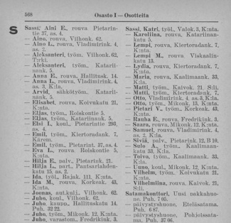 Nimi- ja osoiteluettelot ovat julkaistu vuonna 1952 ilmestyneessä Karjalaisten osoitekalenterissa ja perustuvat henkilöiden omiin ilmoituksiin.